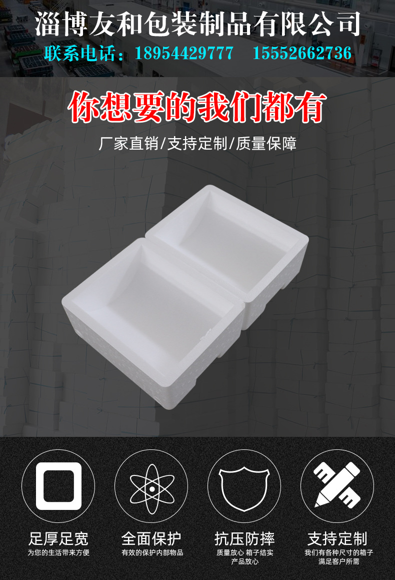 ????淄博友和包裝制品有限公司是專業(yè)的山東泡沫包裝箱加工廠家,本廠主要產(chǎn)品有:泡沫包裝箱,泡沫保鮮箱,水果蔬菜泡沫包裝箱,水果蔬菜泡沫保鮮箱,瓷磚泡沫包裝箱等,產(chǎn)品暢銷全國(guó),深受用戶好評(píng)。泡沫包裝定做可以聯(lián)系我們網(wǎng)站 http://www.1113kj.com/ 上電話,我們會(huì)第一時(shí)間跟您聯(lián)系。