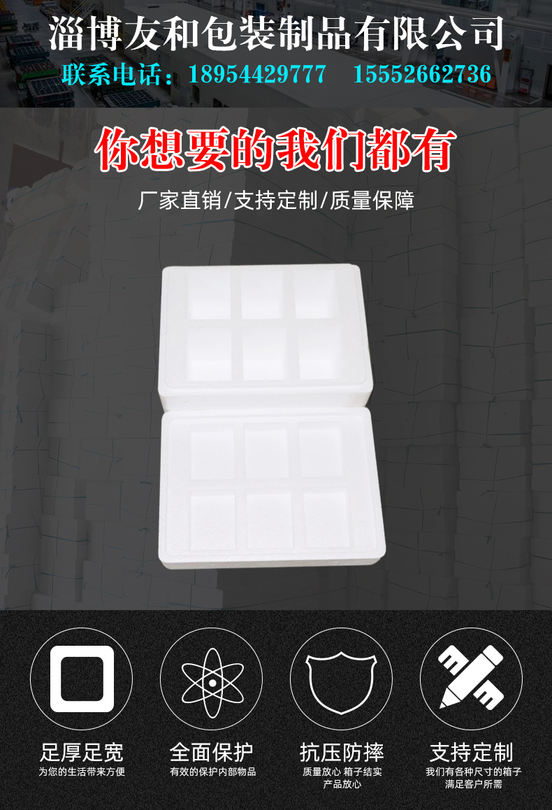 ????淄博友和包裝制品有限公司是專業(yè)的山東泡沫包裝箱加工廠家,本廠主要產(chǎn)品有:泡沫包裝箱,泡沫保鮮箱,水果蔬菜泡沫包裝箱,水果蔬菜泡沫保鮮箱,瓷磚泡沫包裝箱等,產(chǎn)品暢銷全國,深受用戶好評。泡沫包裝定做可以聯(lián)系我們網(wǎng)站 http://www.1113kj.com/ 上電話,我們會第一時間跟您聯(lián)系。